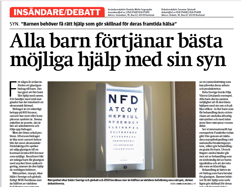 supportar oss och möjliggör att vi kan driva gemensamt viktiga frågor gällande myopi.